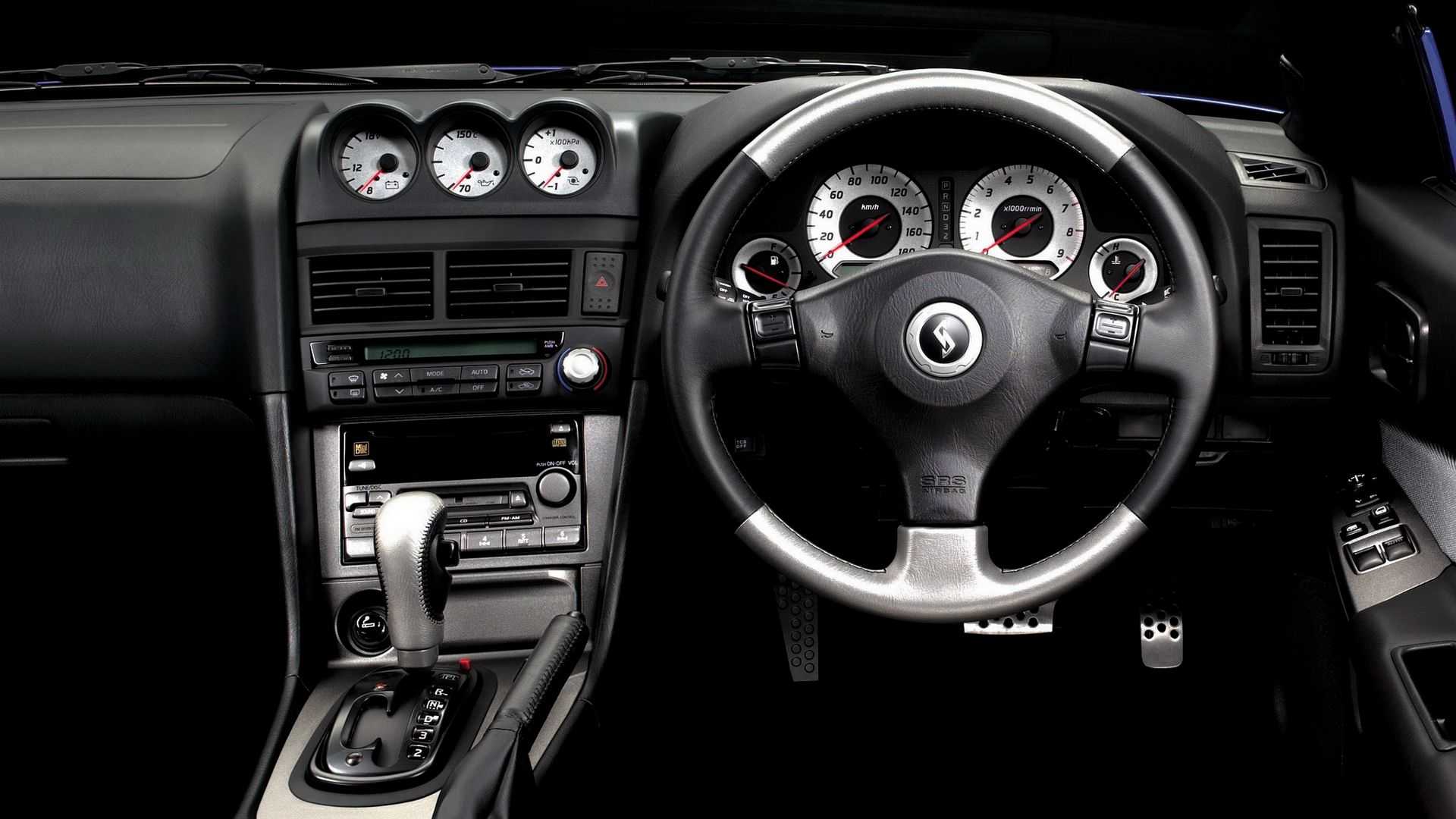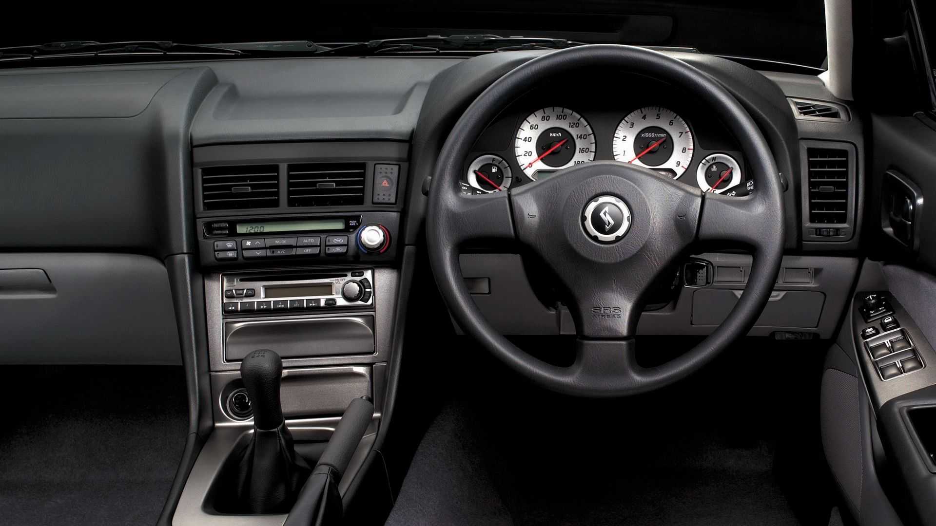 На премию за дизайн Nissan Skyline R34 не претендовал, его разработчики преследовали иные цели — простоту и функциональность. Ну а светящаяся множеством разноцветных светодиодов магнитола тогда было нормой, хотя сейчас больше вызывает ностальгию по провинциальным дискотекам конца двухтысячных. В плане простора спереди было достаточно места, сзади поменьше, обзорность хорошая, но картинку через стекло заднего вида немного портит спойлер, который делит её пополам.
