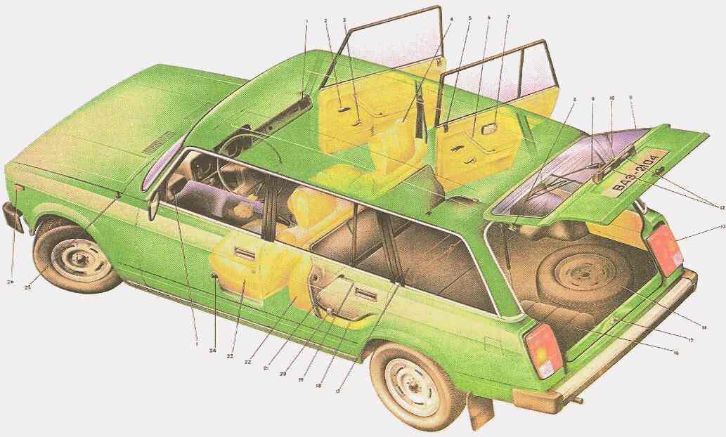 Однако длинные элементы легко зафиксировать на крыше машины, так как длина ВАЗ 2104 позволяет перевозить балки, лыжи, доски и прочие длинные изделия без риска создания опасных дорожных ситуаций. Но нельзя перегружать крышу автомобиля, так как расчётная жёсткость кузова универсала гораздо ниже, чем у седанов следующих поколений ВАЗ.