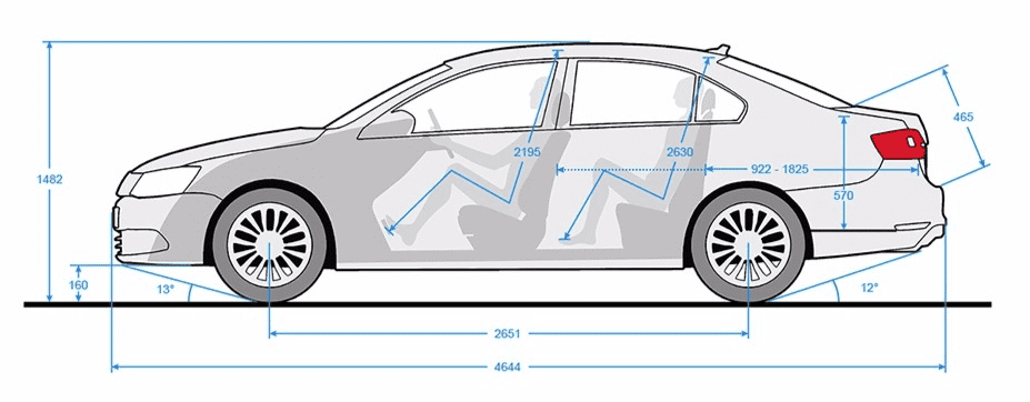 Если обратить внимание на размеры кузова последней представленной модели Volkswagen Jetta, то они действительно впечатляют, даже самых искушенных поклонников данной марки. Габаритные размеры последней модификации кузова VW Jetta радуют не только достойным показателем длины в 4644 мм, но и внушительной шириной колесной базы, которая достигает 2020 мм