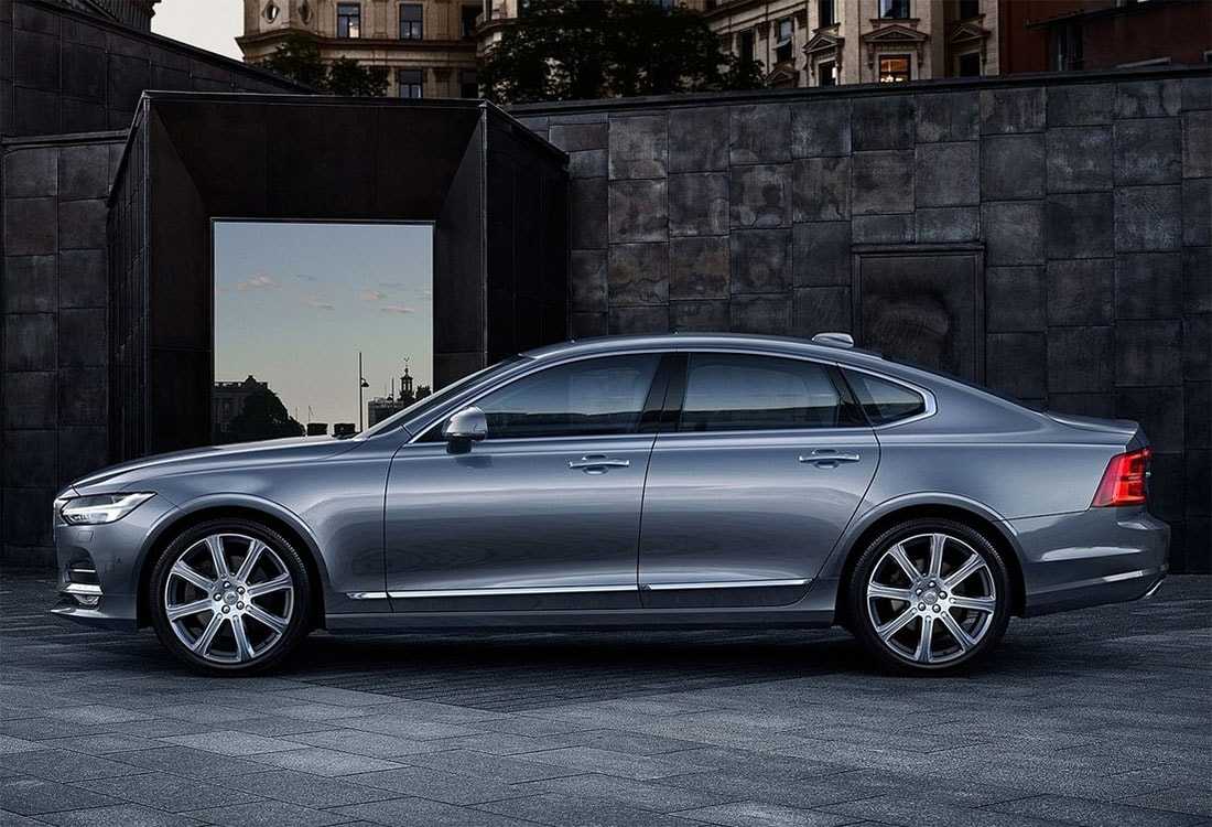 В профиль обновленный Volvo S90 также хорош – куполообразная крыша, большие двери, стильные боковые зеркала, огромные колесные арки, массивные колеса