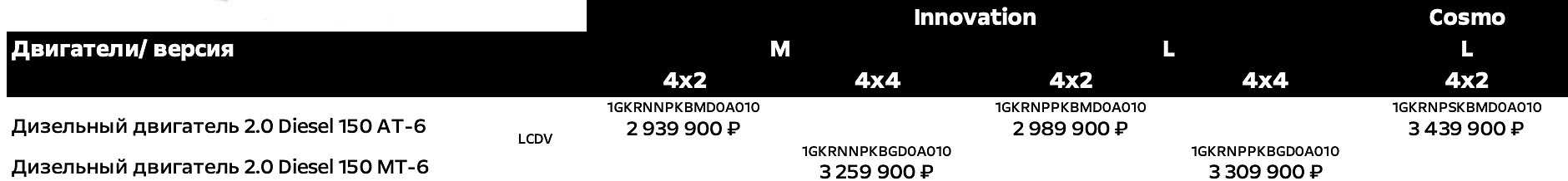 - Innovation L. Минимальная цена за авто с приводом на передние колёса от 2,99 миллионов рублей. За полный привод попросят от 3,3 млн.