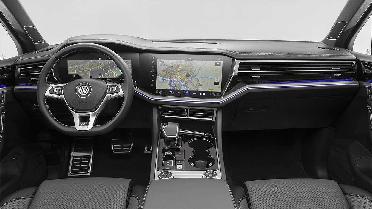 Главной переменой в данном тестовом автомобиле стал бензиновый 3-литровый турбомотор: 340 л.с. мощности и 450 Нм момента в широчайшем диапазоне (1340-5300 об/мин). Главная перемена, но не единственная. Так, бензиновые версии Volkswagen Touareg относительно дизельных V6 получают еще и увеличенные тормоза. Кроме того, версия с бензиновым V6 является самой легкой в гамме модели – 2020 кг. Наконец, нынешний тестовый автомобиль получил 20-е диски с меньшим профилем шин относительно толстых 19-х колес в прошлом.