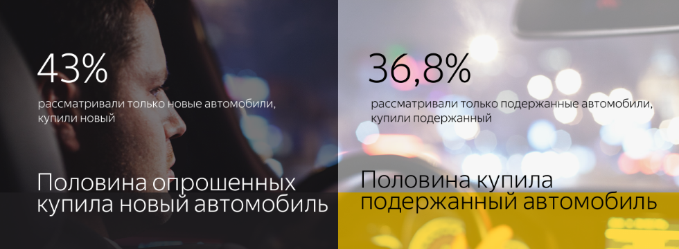 Соотношение купивших новый и подержанный автомобиль — 50 на 50.
