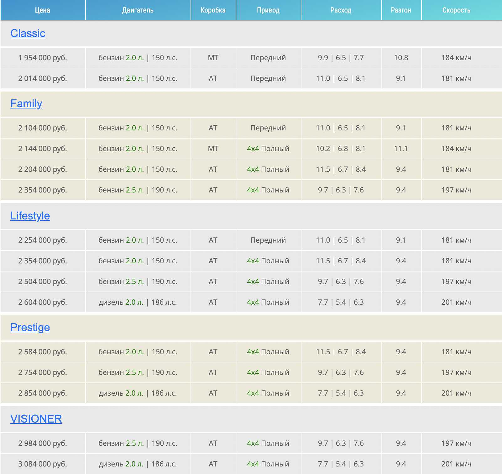 Старший двигатель: · объём 2,5 литра · атмосферный · мощность 190 л. с. · крутящий момент 242 Нм |