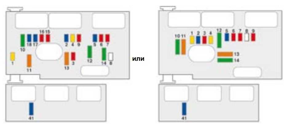 Отдельно размещен F41 – 15 A Процессор шестиступенчатой АКП. Предохранители высокой мощности (макси) находятся в нижней части блока.