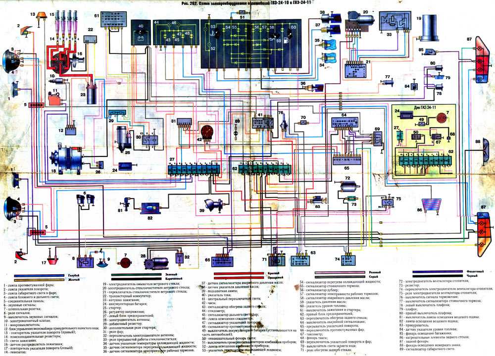 Легендарный автомобиль советов, который еще называли машиной КГБ и богачей. Завод шел в ногу со временем, поэтому электросхема газ 24 довольно проста в понимании и диагностике.