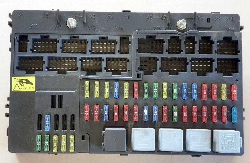 Схема расположения предохранителей и реле в монтажном блоке моторного отсека.