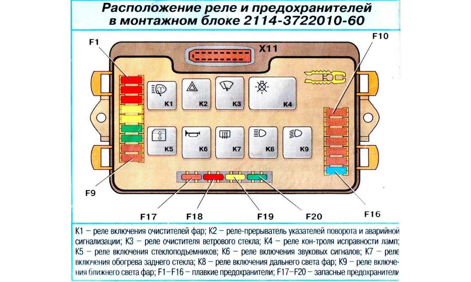 Расшифровка предохранителей монтажного блока для ВАЗ 2109, 2108, 21099