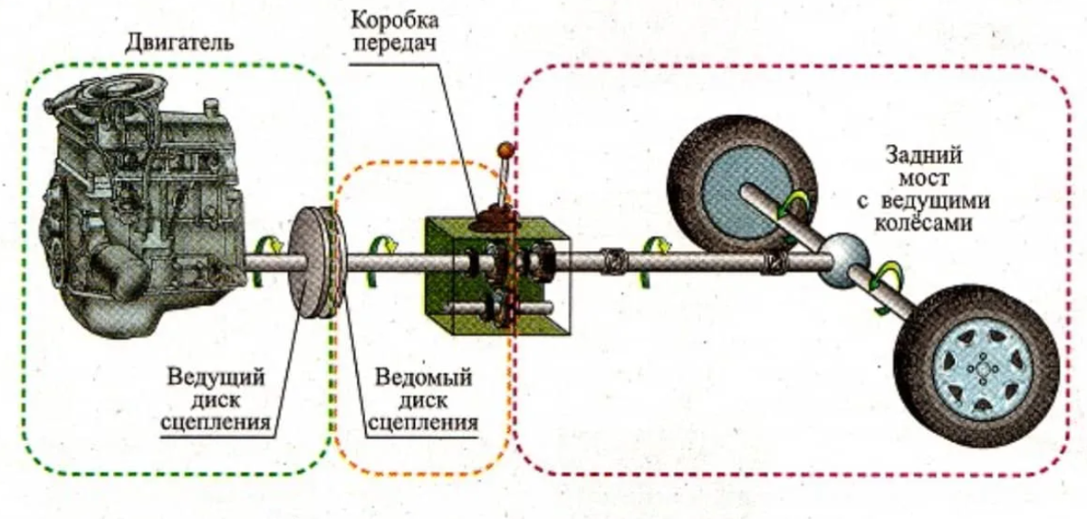 Автомобиль состоит из таких агрегатов, как двигатель, коробка передач и сцепление (что важно для МКПП). Для того, чтобы автомобиль ехал вперед, нужно, чтобы двигатель толкал его в это направлении