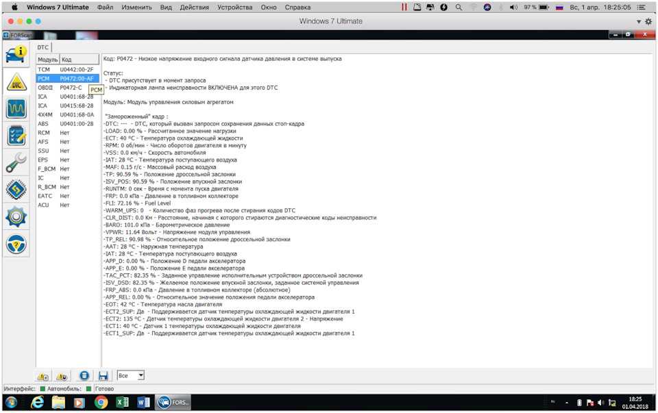 Подключив ноутбук и просканировав ошибки, увидел несколько ошибок в разных блоках.Но как в последствии понял, основная ошибка код P0472В блоке PCM эта ошибка P0472 — Низкое напряжение входного сигнала датчика датчика давления в системе выпуска.В блоке OBDll эта ошибка P0472 — Нарушение в цепи датчика обратного давления выхлопного газа.