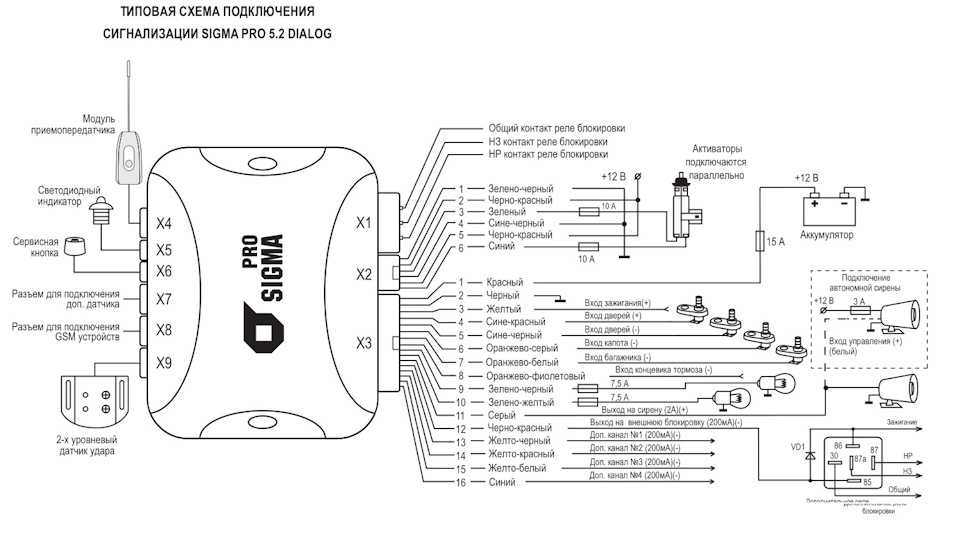 Для подключения всех компонентов к микропроцессорному модулю противоугонной установки надо учитывать распиновку устройства: