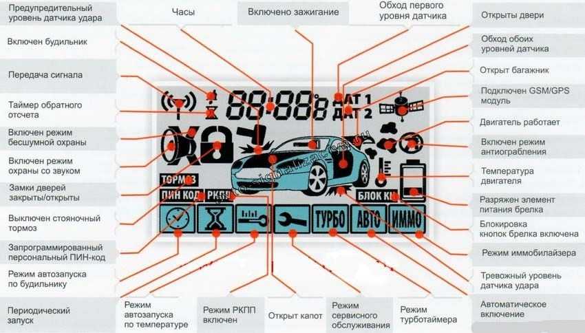 - индикатор «РКПП» горит, если сигнализация настроена на автозапуск автомобиля с механической коробкой передач. Это – не настройка брелока, она задается при установке и не может быть отключена брелоком или через меню настроек системы;